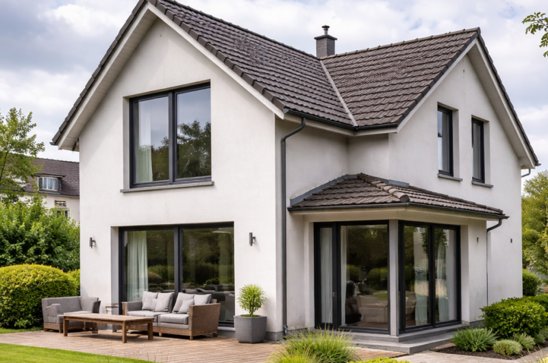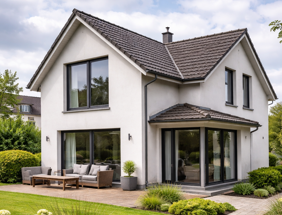 Dieses gepflegte Einfamilienhaus überzeugt durch eine klare Architektur, eine durchdachte Raumaufteilung und ein angenehmes Wohnumfeld. Bereits beim ersten Eindruck zeigt sich: Hier wurde Wert auf Substanz und Alltagstauglichkeit gelegt. Die helle Fassade, das klassische Satteldach und der liebevoll angelegte Garten vermitteln ein stimmiges Gesamtbild.