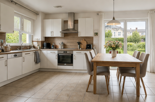 Die Räume wirken hell, ruhig und einladend – ideal für Familien oder Paare, die Wert auf ein angenehmes Wohngefühl legen.